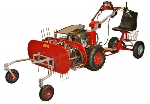 Obraceč slouží pro obracení a shrabování trávy. Je schopen velmi účinně vyhrabávat i seno, které je již prorostlé dvoutýdenní novou trávou. Náprava stroje je otočná a usnadňuje otáčení stroje, lze ji však v případě potřeby zajistit v přímém směru jízdy a stroj pak zvládá projíždět i v náročnějším terénu. Aby nedocházelo k vytřepávání travních semen doporučujeme při práci jezdit vyšší rychlostí pojezdu s minimem otáček motoru.