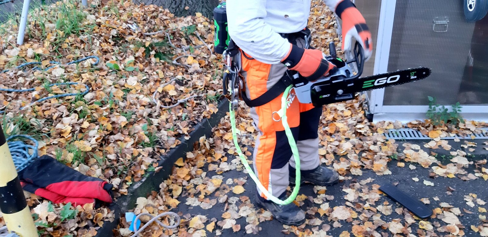 Jednoruční řetězová pila EGO CSX3000E s horním držením je vybavena 30 cm lištou a řeznou rychlostí 20 m/s. Hmotnost činí 3,5 kg.