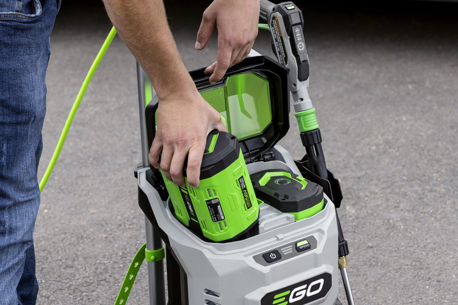Zcela nová a inovativní AKU tlaková myčka** EGO HPW2000E** je kombinací vysoce efektivního tlakového mytí s nejdelší výdrží baterií na trhu. Kompaktní design s výsuvnou hliníkovou teleskopickou rukojetí. Bezdrátové ovládání z mycí pistole a výběr různých trysek vám poskytuje plnou kontrolu nad strojem a maximálně efektivní a účinný čistící výkon pro široké spektrum způsobů použití. Aku tlaková myčka EGO umyje váš motocykl, traktor, automobil, zahradní nábytek i terasu. Díky patentované technologii napájení "Peak Power" se dvěma bateriemi si snadno poradí i s odolnější špínou a nepotřebuje ani elektrickou zásuvku, ani přípojku vody. Naprostá autonomie provozu. Stroj je standardně dodáván bez baterií a nabíječky. Baterie, nabíječku a další příplatkové příslušenství potom rozšiřuje specifické možnosti použití stroje.