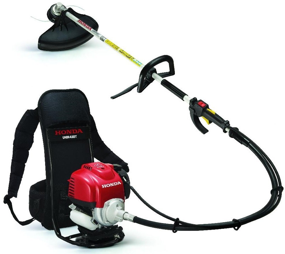 Zádový křovinořez Honda UMR 435 L s jmenovitým výkonem motoru 1,0 / 7000 kW/min-1. Ohebná hřídel, typ přenosu síly antivibrační odstředivá spojka. Pracovní nástroje strunová hlava Tap&Go, 3-zubý travní kotouč.