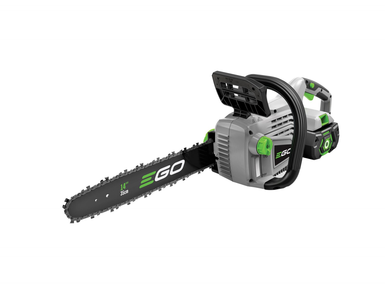 Pro lehkou a přesnou práci a manipulaci je celá pila dokonale ergonomicky vyvážena. Kratší lišta v celkové délce 35cm poskytuje pile mimořádnou ovladatelnost. Madlo držení je opatřeno bezpečnostní pojistkou, která zaručuje v případě uvolnění okamžité vypnutí stroje. Na rukojeti je umístěn vypínač, který zajišťuje při stisknutí plynulé a postupné spuštění stroje. Díky příjemné ovládací rukojeti je držení pily při práci velmi stabilní, bezpečné a pohodlné a stroj je vhodný pro jakékoliv zahradnické práce v domácím použití. Pomocí zařízení pro rychlonapínání řetězu je napínání pilového řetězu velmi jednoduché a není potřeba žádného nářadí. Po uvolnění rozměrné upínací matice lišty je možné rychle a jednoduše napnout pilový řetěz nad ním umístěným stavěcím kolečkem. Mazání řetězu je zde plně automatické a díky spolehlivému olejovému čerpadlu je podáváno příslušné množství mazacího oleje přímo do vodící drážky lišty. Díky konstrukci lišty a posuvu řetězu se dopraví každá kapka mazacího oleje přesně tam kde je to nutné. Pro kontrolu hladiny mazacího oleje je pila opatřena kontrolním olejoznakem. Na pohon pily lze použít jakoukoliv baterii ze sortimentu EGO a např. baterie 2,5Ah vám umožní uskutečnit až 130 řezů a s baterií 5,0Ah až 300 řezů. Naše lithiové baterie EGO Power+ 56V Arc Vám poskytnou dostatek energie pro pohon dostatečně výkonného a účinného bezuhlíkového elektromotoru s přímým náhonem na řetězku. Díky externímu umístění baterie mimo kapotáž pily je baterie efektivněji ochlazována a je schopna efektivněji napájet motor pily. Pila je mimořádně tichá a sousedé Vás při práci ani neuslyší. Žádná napájecí šňůra, žádné provozní náplně, žádný hluk, žádný zápach. Nízká hmotnost, pohodlný úchop a snadná manipulace dělají z této řetězové pily vynikajícího pomocníka do každé chalupy.