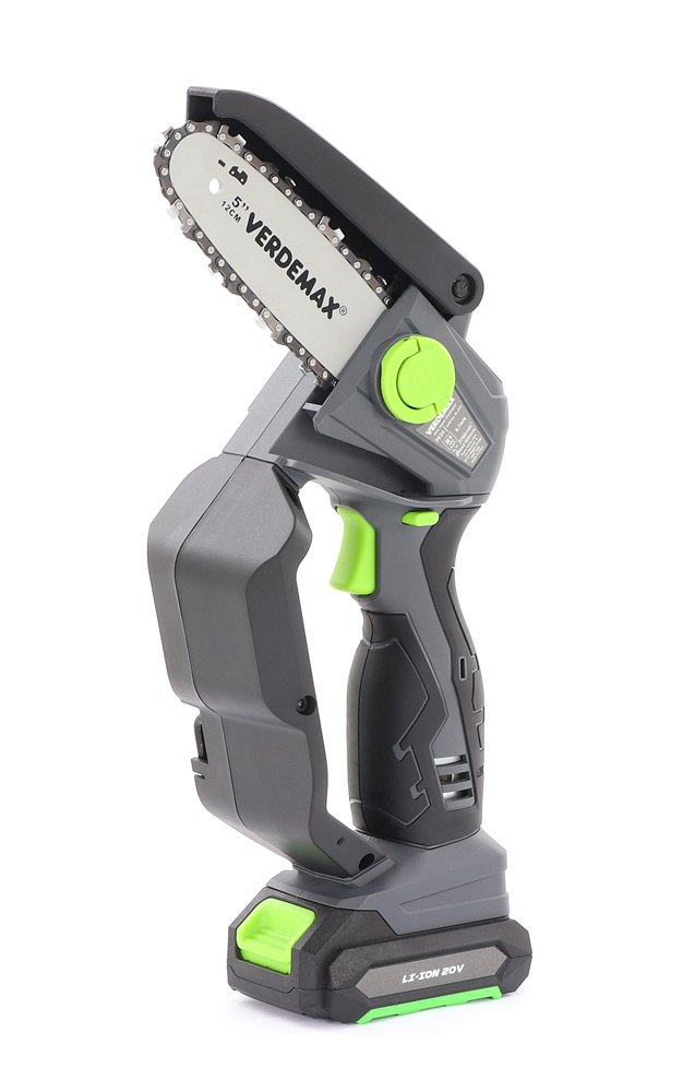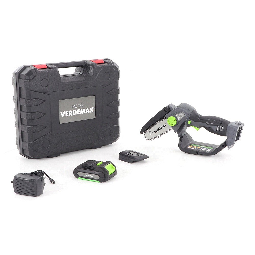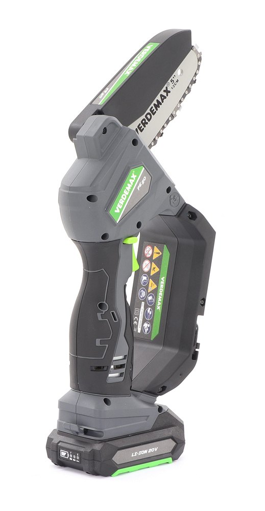 VERDEMAX PE20 Aku jednoruční řetězová pila je ergonomická výborně sedí do ruky, usnadní práci jak v koruně stromu při prořezávání, odřezávání, odvětvování a zkracování. Je to skvělý pomocník na úpravu stromů , keřů , vinic atd….