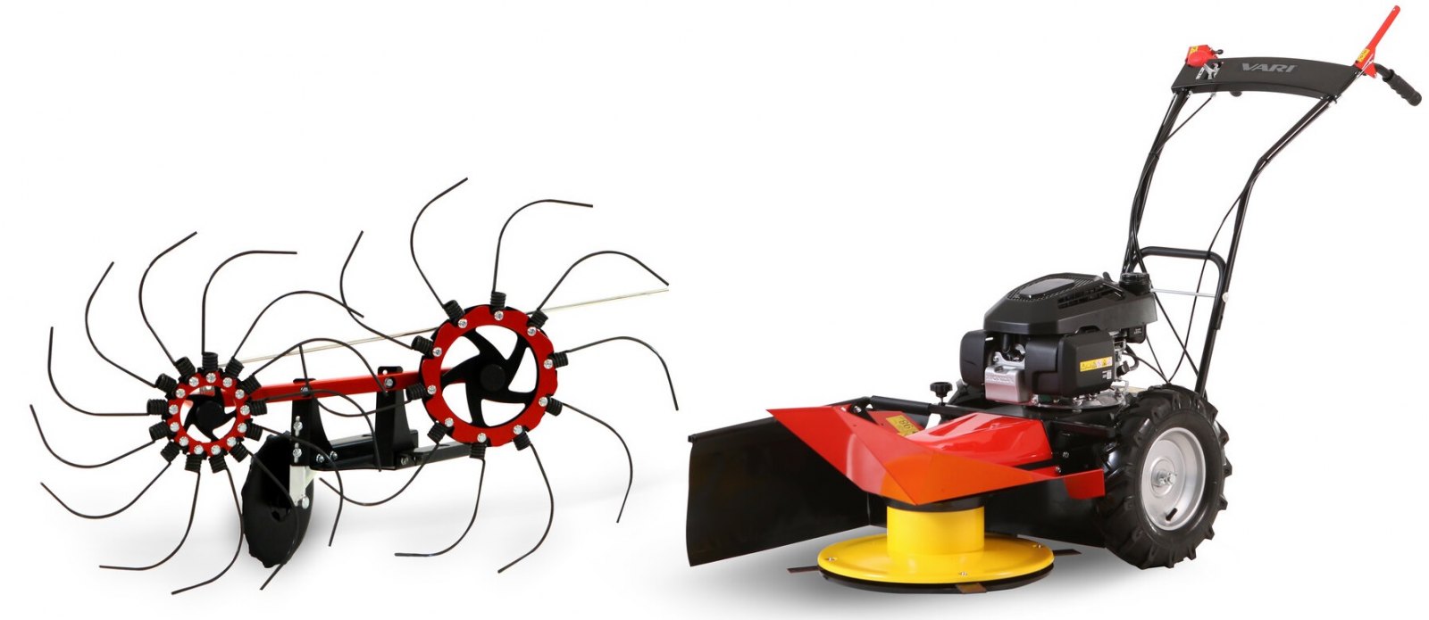 Přestavění stroje na mulčovač, sněžný pluh, kartáč nebo senohrab trvá 10-15 minut, probíhá za použití nářadí a lze jej snadno řešit svépomocí. Připojení pohonu příslušenství je realizováno přes patentovaný systém dělené hřídele a drážkované spojky. Toto řešení zajišťuje vysokou životnost a snadnou rozebiratelnost i po letech používání!