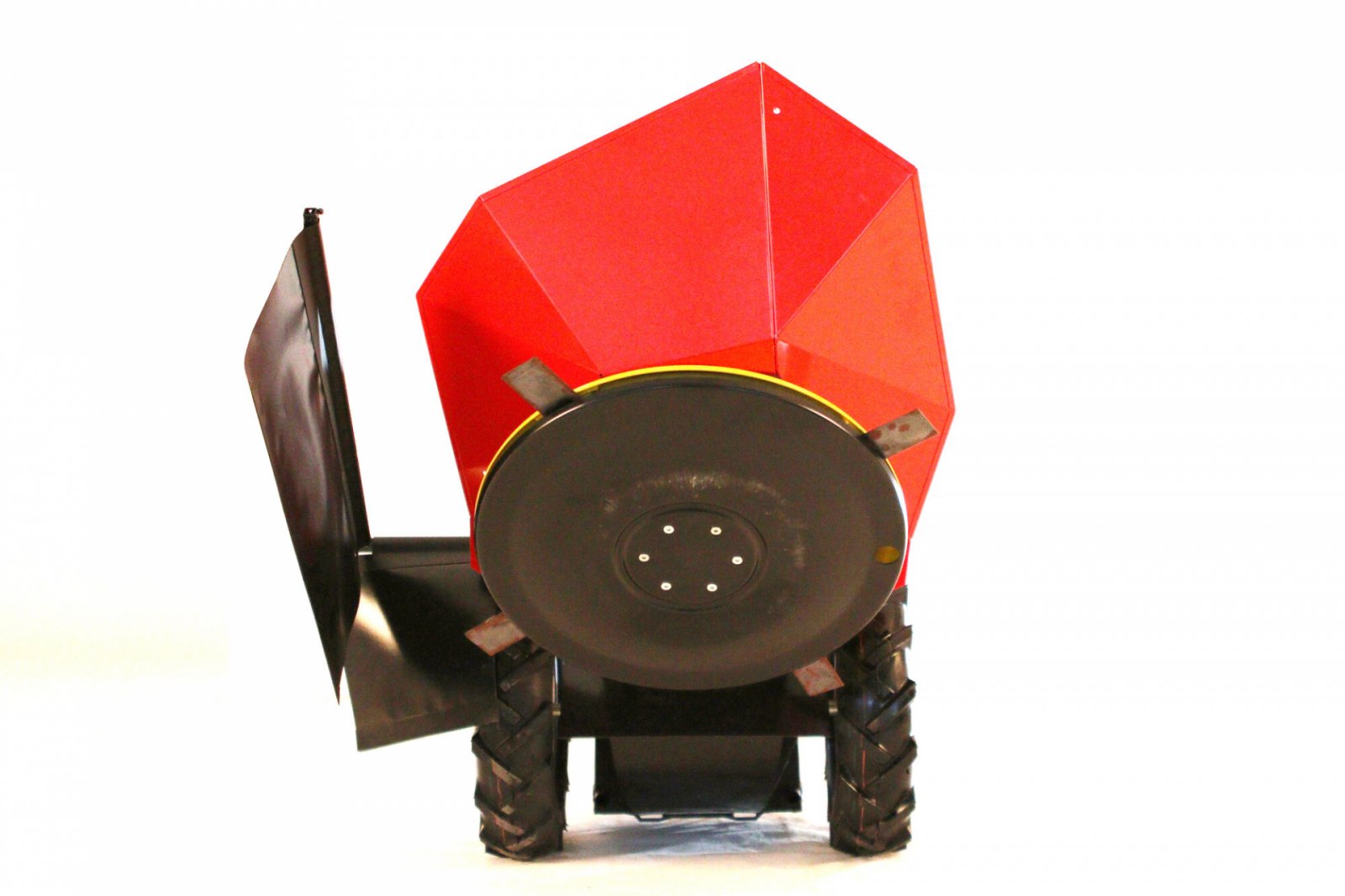 vyvážením** pro práci na rovině i ve svahu, má pevnou nápravu, tuhý a odolný rám s HDG plechovým asymetrickým krytem žacího disku, který umožňuje lepší navádění sekané vysoké trávy a její řádkování. Zároveň zajišťuje mimořádnou ochranu pro obsluhu. Pracovním nástrojem sekačky je čtyřnožový žací buben – velice robustní lisovaný díl s celoplošným ocelovým podběhem, který chrání uložení nožů. Uložení žacích nožů T-Bar zvyšuje zároveň obvodovou tuhost žacího bubnu a jeho celkovou životnost.