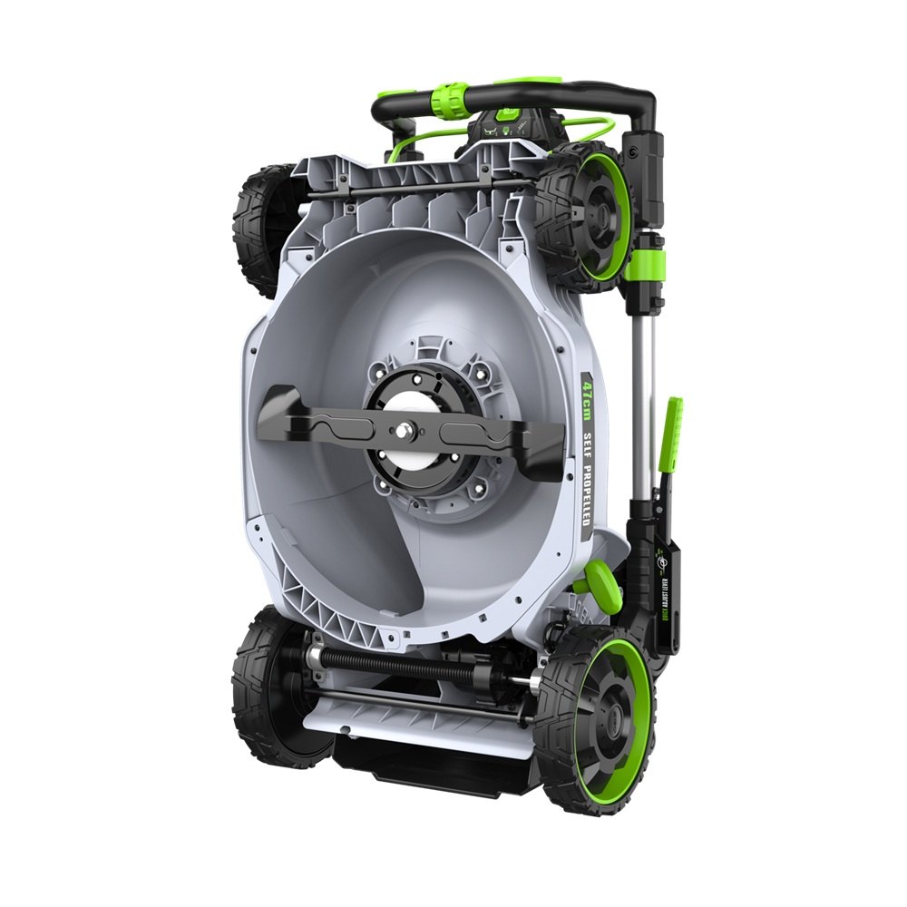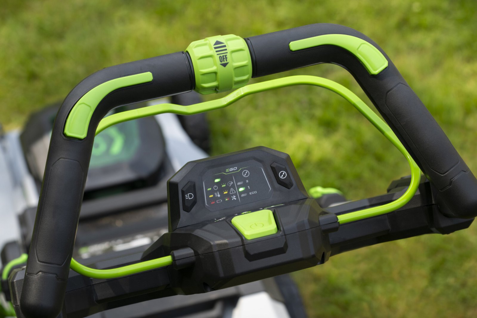 Model EGO LM 1914E-SP - záběr sečení 47cm a plynule proměnlivý pojezd, volič režimu sekání, objem sběrného koše 55L, teleskopická a výškově nastavitelná komfortní rukojeť. Pod tímto označením LM1914E-SP je sekačka dodávána pouze v sadě s 6,0 Ah baterií a rychlonabíječkou CH5500E. Samostatný stroj bez baterie a nabíječky je dodáván pod označením LM1910E-SP.