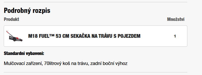 • Obsahuje mulčovací zařízení, 70litrový koš na trávu a deflektor pro zadní boční výhoz