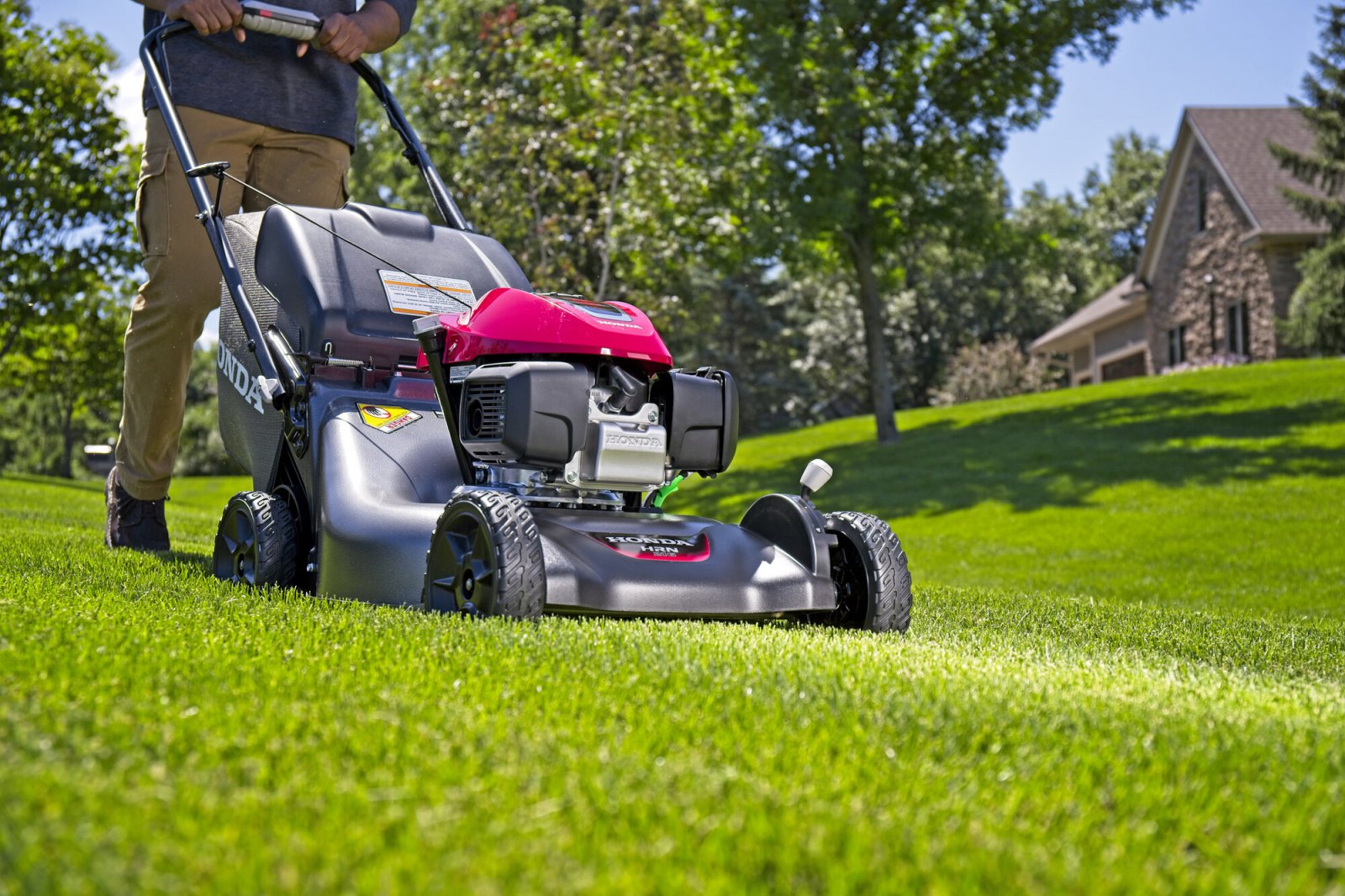 Tato benzínová sekačka je základním pokračováním nabídky řady HRG do většího záběru sekání a je nástupcem velmi oblíbeného modelu HRG536, který si za dobu své mnohaleté existence získal tisíce spokojených uživatelů. Díky silnému motoru a originálnímu systému Honda Optiflow je nová HRN536 schopna zvládnout i přerostlý nebo dokonce mokrý travní porost. Ovládací prvky jsou přehledně uspořádány poskytují obsluze velmi snadnou manipulaci. Nový podvozek se dočkal vylepšeného tvarování žací komory a nápravového nastavování výšky sekání. Motor je automaticky nastaven na pracovní otáčky bez dalších páček ovládání. Vlastní pohon s možností plynulé změny rychlosti jízdy SMART Drive® se dočkal modernizace, zvýšení komfortu ovládání a dokonale se přizpůsobí pohybovým schopnostem každého. Snadné manipulaci přispívají nové nápravy a pojezdová převodovka, která působí menším odporem při jízdě bez použití pojezdu jak vpřed, tak i vzad. Výrazně se tak snižuje námaha při práci. Motor s automatickým sytičem je opatřen zařízením, které umožňuje velmi lehký start, který bez problémů zvládnou i ženy či fyzicky slabší uživatelé. Výkonem a hlavně kroutícím momentem je nový motor GCV 170 nejsilnějším motorem na trhu v dané kategorii a lehce překonává i konkurenční motory větších kubatur. Neméně důležitá je také odolnost motoru vůči automobilovým benzínům s obsahem 10% ethanolu (E10). Motor je navíc provozně čistější (plní normu EURO5), úspornější, snadnější na údržbu a odolnější vůči benzínům s obsahem biolihu. Sekačku lze používat ve třech režimech použití; sekání se sběrem, sekání bez sběru a mulčování. Patentovaný integrovaný systém Honda CLIP DIRECTOR™ je zde od základu přepracován. Ovládání mulčovací klapky se přesunulo z horní části podvozku přímo nad žací komoru po levé straně motoru. Umožňuje obsluze jedním pohybem ovladače během vteřiny změnit sekačku trávy na mulčovač nebo drtič spadaného listí a naopak. Samozřejmostí je u této sekačky použití dvou samostatných nožů v podobě sekacího nože s lopatkami výhozu trávy do sběrného koše a mulčovacího nože, který nadrtí trávu na menší částečky. Sekačka je opatřena veškerými bezpečnostními prvky včetně bezpečnostní brzdy rotace sekacích nožů, která zajistí okamžité zastavení rotace sekacích nožů při vypnutí motoru. Robustní a pevná konstrukce podvozku spolehlivě snese působení ohromného výkonu motoru na rotující sekací nože a navíc v maximální možné míře pohlcuje vibrace, které se dále nepřenáší na ovládací madlo sekačky. Práce je potom příjemnější. Tato Honda je určena pro uživatele, kteří potřebují sekat trávu jak na rovné, tak i částečně svažité a členité travnaté ploše o velikosti cca do 1500 m2.