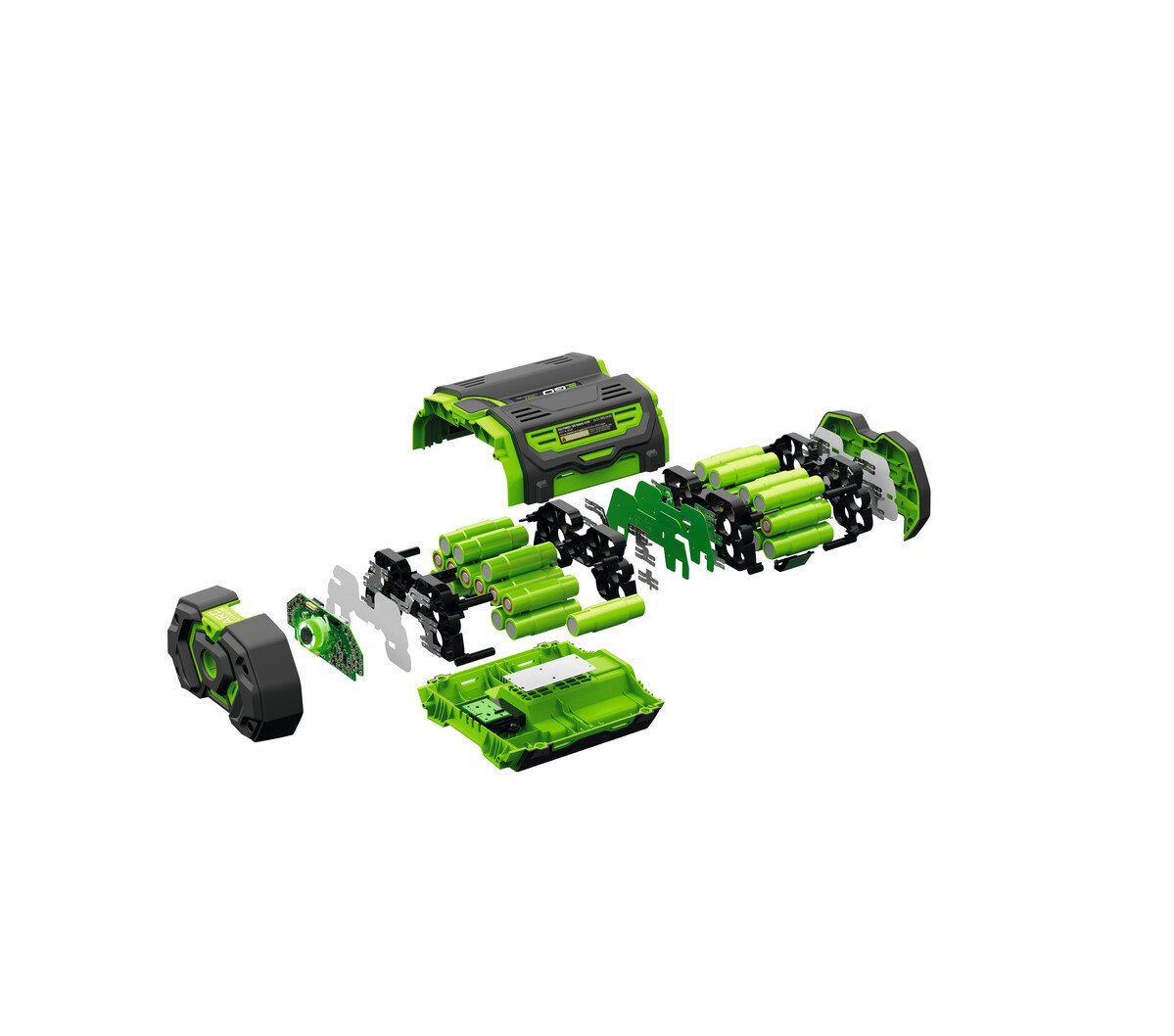 Na světě existuje jen několik výrobců Li-ion článků (Sony, Samsung, Panasonic), které jsou si v podstatě podobné jako vejce vejci. Všichni výrobci AKU strojů nakupují tyto články u stejných výrobců a je jen na nich, jakým způsobem jednotlivé články poskládají a uspořádají. To je důležité z hlediska optimálního chlazení článků a využitelnosti jejich potenciálu. Patentově chráněná konstrukce EGO Power+ 56V Arc zajišťuje dokonalé chlazení a teplotní vyváženost celé baterie jak při práci, tak i při nabíjení. Tvarování baterie a řazení článků způsobem "Arc" – do oblouku nebo portálu, je důmyslnějším řešením z hlediska zajištění přístupu chladícího vzduchu ke každému jednotlivému článku než obvyklý klasický tvar baterie ve formě „hranolu“, kde jsou jednotlivé elektrické články řazeny jeden vedle druhého a v řadách nad sebou jako cihly. Tím jsme docílili umístění jednotlivých článků tak, aby každý článek byl co nejblíže k pouzdru baterie, získali tak větší ochlazovací plochu a dochází snadněji k odvádění tepla od článků směrem ven. Ovšem nejen inovativní portálový tvar baterií napomáhá předcházet přehřívání. Baterie má ještě další, rovněž dobře promyšlený způsob chlazení. Každý jeden článek je obalen vrstvou unikátního materiálu „Keep Cool“, který mění dle teploty svoji strukturu absorbuje tepelnou energii a udržuje jednotlivé články na jejich optimální teplotě umožňující dlouhodobý provoz. Ani dávkování výkonu baterie u nás není mimo kontrolu. Lithiová baterie EGO Power+ 56V Arc je nepřetržitě monitorována a řízena softwearem a mikroprocesory v řídící jednotce tzv. "balanceru" uvnitř baterie. Inteligentní balancer konstantně monitoruje a optimalizuje každý článek samostatně, takže je vždy dosaženo maximálního výkonu a pracovní doby. Baterie BA1400T disponuje napájecím výkonem 1120W a využitelnou energií 140Wh a je kompatibilní se všemi AKU stroji z nabídky EGO, včetně ryze profesionálních. Pro nabíjení je nutné použít inteligentní nabíječku ze sortimentu EGO. Stav baterie je neustále monitorován a zobrazován světelnými LED diodami.