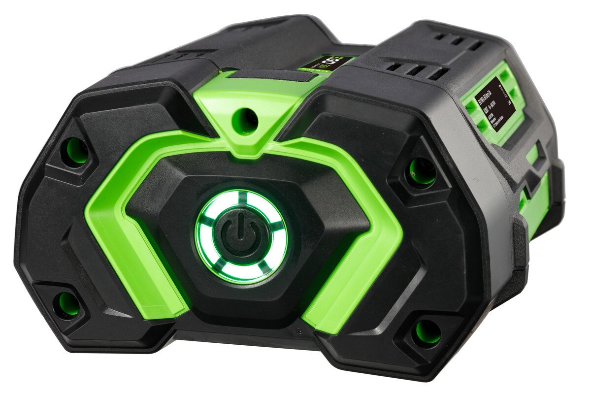 Na světě existuje jen několik výrobců Li-ion článků (Sony, Samsung, Panasonic), které jsou si v podstatě podobné jakp vejce vejci. Všichni výrobci AKU strojů nakupují tyto články u stejných výrobců a je jen na nich, jakým způsobem jednotlivé články poskládají a uspořádají. To je důležité z hlediska optimálního chlazení článků a využitelnosti jejich potenciálu. Patentově chráněná konstrukce EGO Power+ 56V Arc zajišťuje dokonalé chlazení a teplotní vyváženost celé baterie jak při práci, tak i při nabíjení. Tvarování baterie a řazení článků způsobem "Arc" – do oblouku nebo portálu, je důmyslnějším řešením z hlediska zajištění přístupu chladícího vzduchu ke každému jednotlivému článku než obvyklý klasický tvar baterie ve formě „hranolu“, kde jsou jednotlivé elektrické články řazeny jeden vedle druhého a v řadách nad sebou jako cihly. Tím jsme docílili umístění jednotlivých článků tak, aby každý článek byl co nejblíže k pouzdru baterie, získali tak větší ochlazovací plochu a dochází snadněji k odvádění tepla od článků směrem ven. Ovšem nejen inovativní portálový tvar baterií napomáhá předcházet přehřívání. Baterie má ještě další, rovněž dobře promyšlený způsob chlazení. Každý jeden článek je obalen vrstvou unikátního materiálu „Keep Cool“, který mění dle teploty svoji strukturu absorbuje tepelnou energii a udržuje jednotlivé články na jejich optimální teplotě umožňující dlouhodobý provoz. Ani dávkování výkonu baterie u nás není mimo kontrolu. Lithiová baterie EGO Power+ 56V Arc je nepřetržitě monitorována a řízena softwearem a mikroprocesory v řídící jednotce tzv. "balanceru" uvnitř baterie. Inteligentní balancer konstantně monitoruje a optimalizuje každý článek samostatně, takže je vždy dosaženo maximálního výkonu a pracovní doby. Baterie BA2800T disponuje napájecím výkonem 2240W a využitelnou energií 280Wh a je kompatibilní se všemi AKU stroji z nabídky EGO, včetně ryze profesionálních. Pro nabíjení je nutné použít inteligentní nabíječku ze sortimentu EGO. Stav baterie je neustále monitorován a zobrazován světelnými LED diodami.