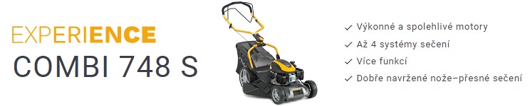 Travní sekačka s pojezdem STIGA Combi 748 SE má šířku záběru 46 cm a 60 litrový hybridní koš s indikátorem naplnění trávy. V ocelovém podvozku je umístěn spolehlivý motor STIGA ST 140 LS o objemu 139 cm3 s čistým výkonem 2,20 kW při 2900 ot./min a praktickým elektrickým startovacím tlačítkem pro jednoduché startování. Combi 748 SE vám umožňuje vybrat si ze 4 různých funkcí sečení: zadní výhoz, boční výhoz, sběr nebo mulčování. Centralizovaná výška sečení se snadno nastavuje pomocí páky do 6 různých poloh v rozmezí od 22 do 80 mm. Velká zadní kola (280 mm) usnadňují manévrování na nerovném terénu. Součástí je boční deflektor a mulčovací zátka. vložka.