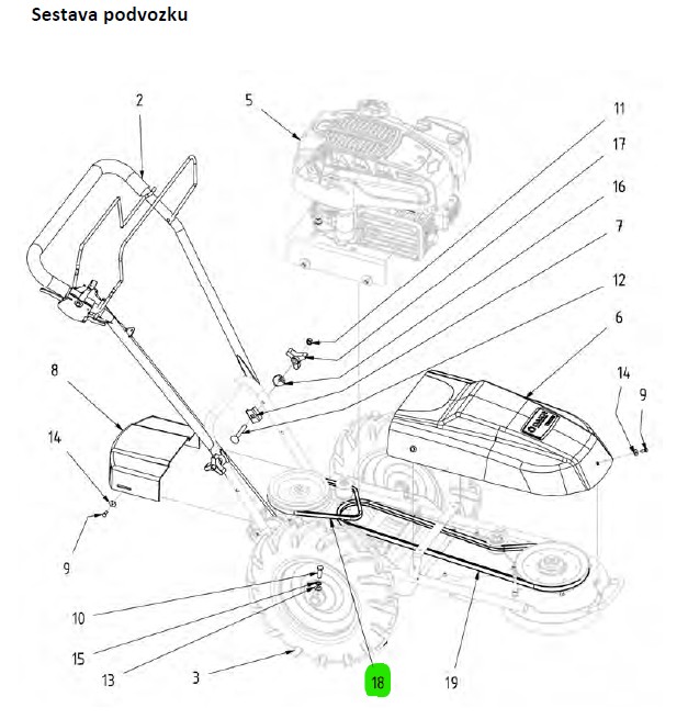 Klínový řemen 10x650 převodovky (spojení motoru s převodovkou a změna rychlosti) u strojů TEKTON od výrobního čísla 6308 s ovládáním obou hrazd shora.