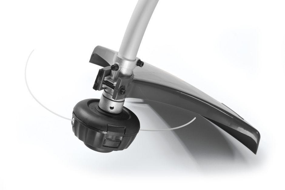 Strunová sekačka na trávu poháněná 2taktním zážehovým motorem o obsahu 25,4 cm3, se zakřivenou hřídelí, jednou rukojetí, šířkou záběru 38 cm a dvoustrunnou hlavou Tap & Go.