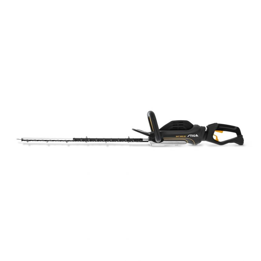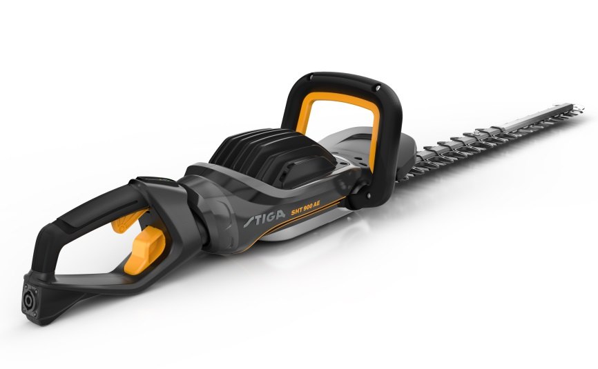 Akumulátorový plotostřih STIGA SHT 900 AE, bez baterie a nabíječky. Výkon 0.5 kW. Doporučená kapacita baterie 2 x 7,5 Ah. Délka lišty 65 cm.