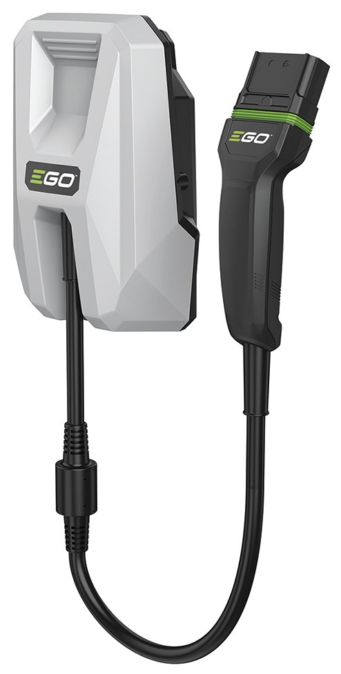 Pro společné nabíjení baterií v rideru Z6 nebo v nabíjecím boxu CHU6000 slouží za normálních podmínek supernabíječka EGO CHV1600E o výkonu 1600W. Co ale dělat, když tahle suopernabíječka není k dispozici? Můžeme využít rychlonabíječku EGO CH5500E o výkonu 550W. Ale ta není vybavena nabíjecím kabelem s příslušným konektorem. Proto máme k dispozici adaptér, který vložíme do nabíječky a kabel připojíme do zástrčky pro nabíjení buď v rideru Z6 nebo v nabíjecím multiboxu. Tímto alternativním způsobem lze společně nabít až 6 baterií EGO i bez supernabíječky.