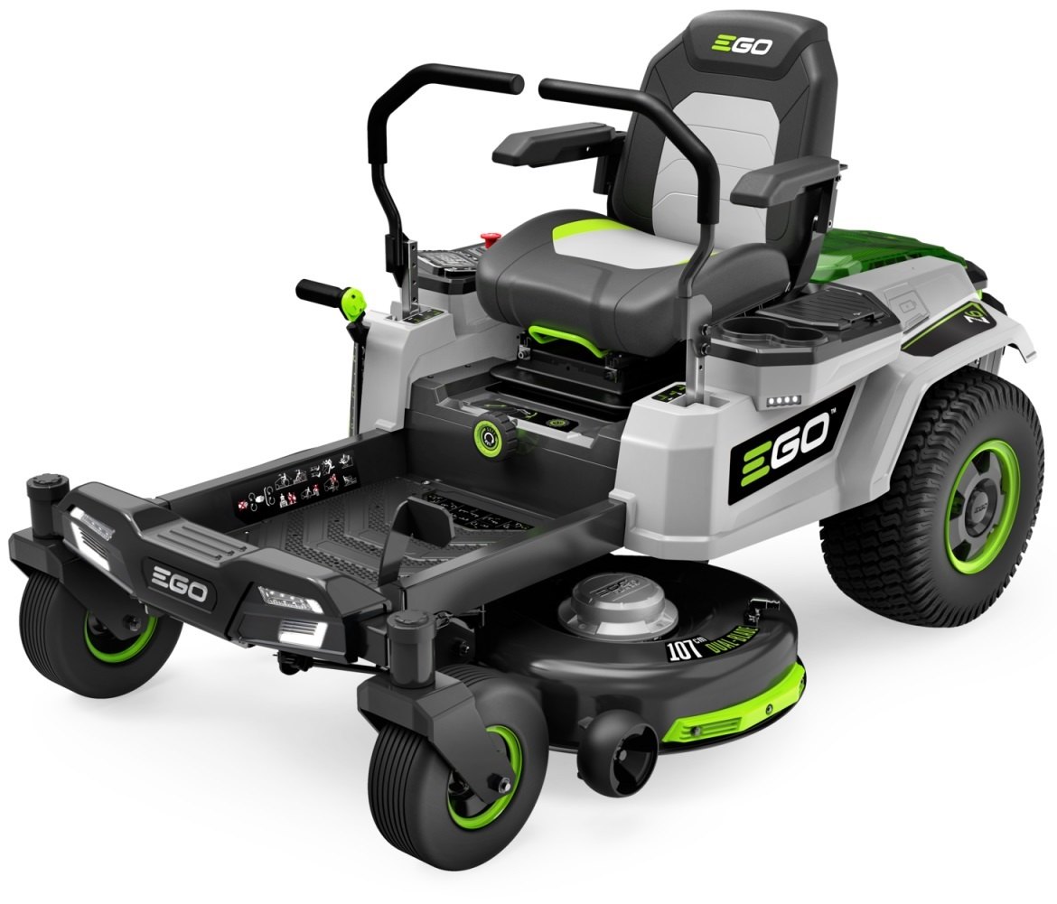 Model EGO Z6 - je prvním modelem Aku rideru na trhu s nulovým poloměrem zatáčení a záběrem sekání 107cm. Síla od spolehlivých a výkonných elektromotorů je na pojezdová zadní kola předávána a plynule dávkována prostřednictvím variabilního elektropojezdu. Pro napájení téhle mašiny slouží až 6 ks EGO Power+ 56V ARC Lithiových baterií „portálové“ konstrukce.