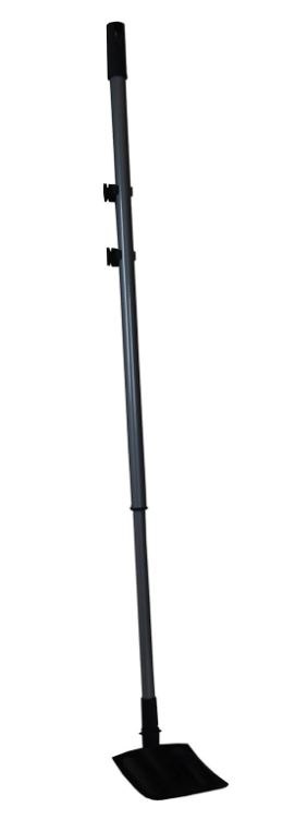 Komín výhozu trávy do sběrného boxu se musí pravidelně kontrolovat a čistit. Tuto činnost vám usnadní teleskopická, výsuvná čistící škrabka. Rovněž v případě, že dojde k zahlcení sekacího zařízení a následnému ucpání komínu výhozu trávy do sběrného boxu, je nutné komín výhozu vyčistit a napěchovanou trávu z komínu výhozu uvolnit. K tomu slouží čistící teleskopická škrabka, kterou lze na traktor upevnit do úchytů, umístěných na horním, plastovém víku sběrného boxu. Po vyčištění komínu výhozu škrabku opět složíme a upevníme do záchytů, připravenou k dalšímu případnému použití.
