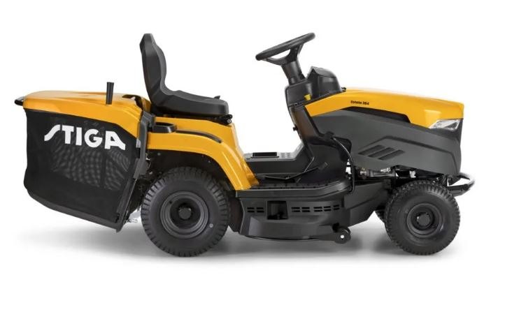 Zahradní traktor Stiga Estate 384 je poháněn motorem Stiga ST450 o max. výkonu 13 HP. Hydrostatická převodovka, záběr sečení 84 cm, koš o objemu 240 l.
