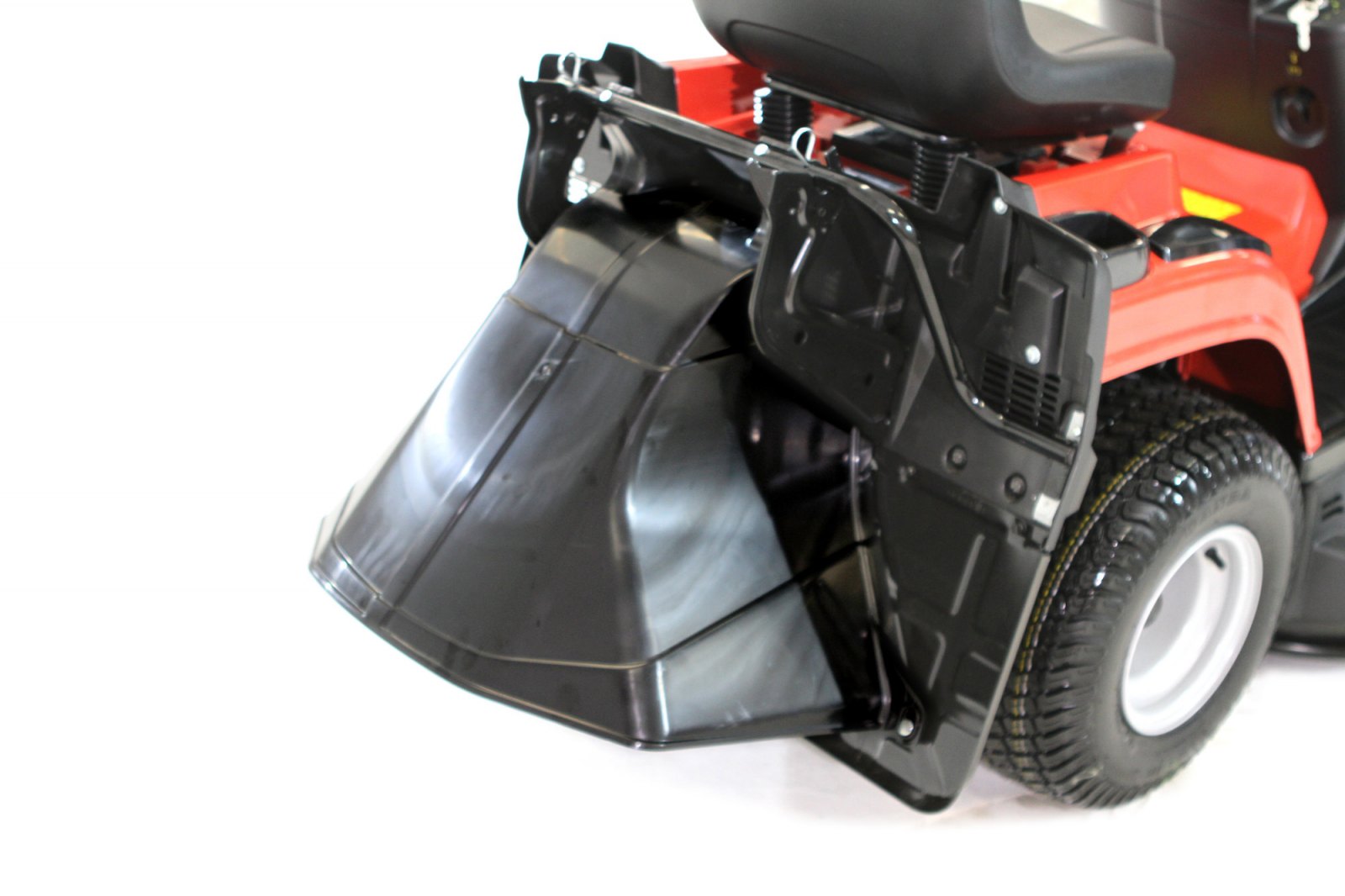 Deflektor k travnímu traktoru RL 102 H je plastový nástavec, který lze namontovat na traktor místo sběrného koše. Usměrní proud posekané trávy a zároveň bezpečně chrání proti odlétajícím kamínkům.