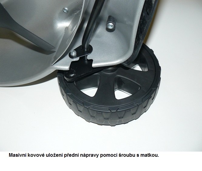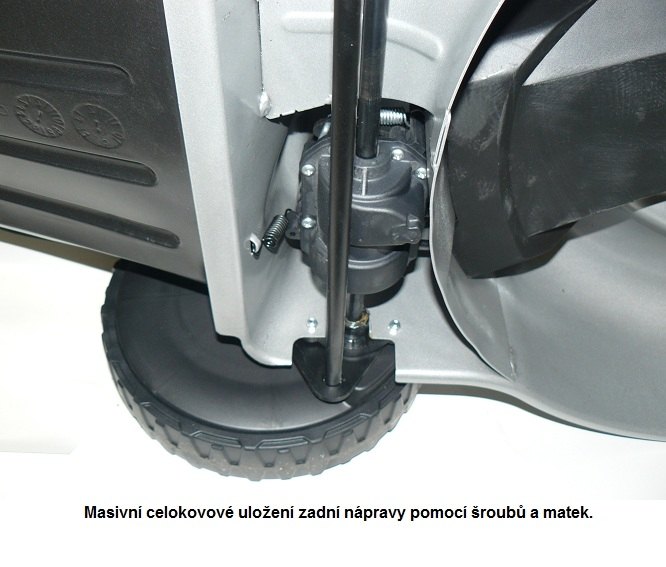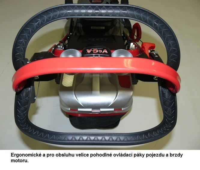 Velká zadní pojezdová kola i přední kola jsou uložena v oboustranných kuličkových ložiscích, centrální nastavení výšky sečení je u značky VeGA samozřejmostí.